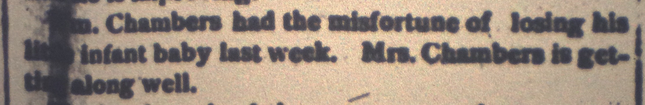 | May 18 1889 Wm Chambers infant Saturday Sentinel |