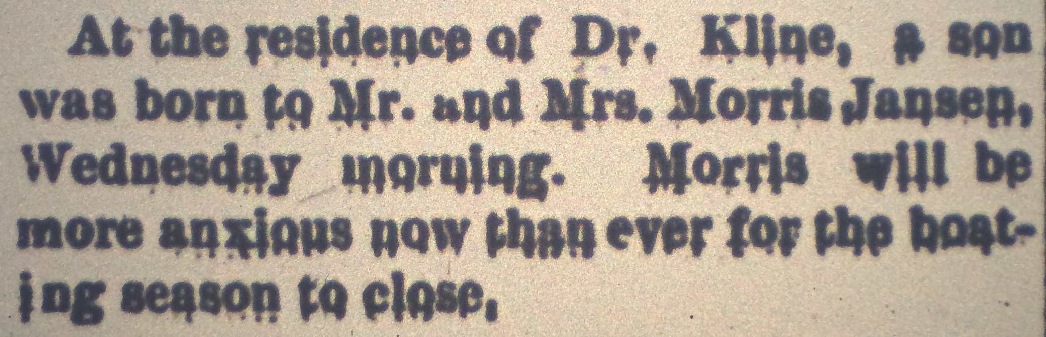 | Nov 16 1889 Son to Morris Jansen Saturday Sentinel |
