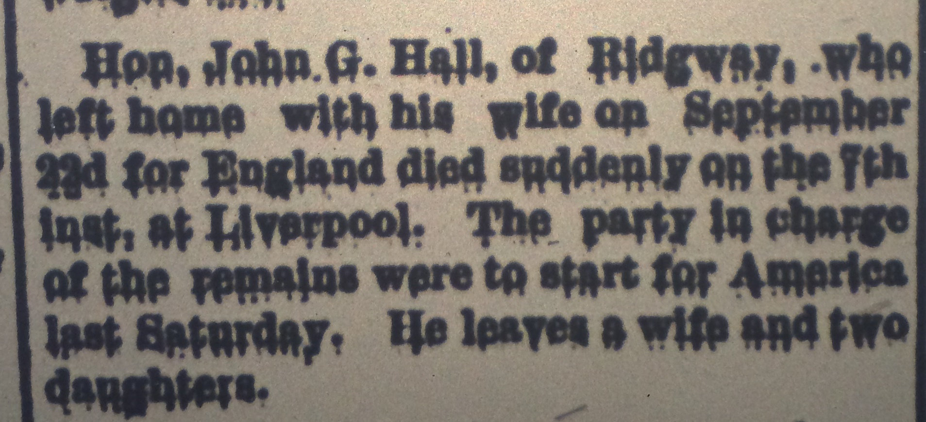 | Oct 19 1889 John G. Hall Saturday Sentinel |