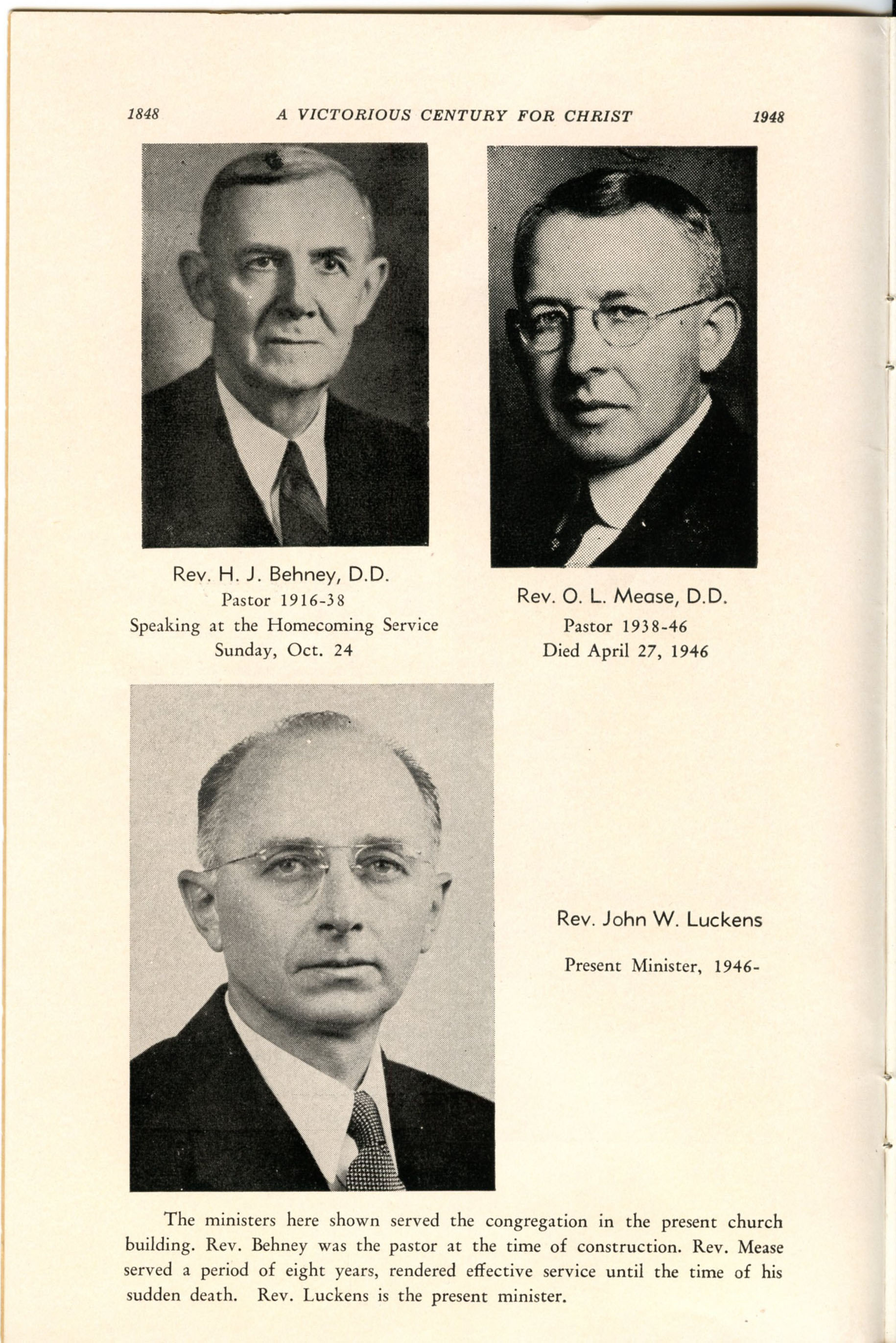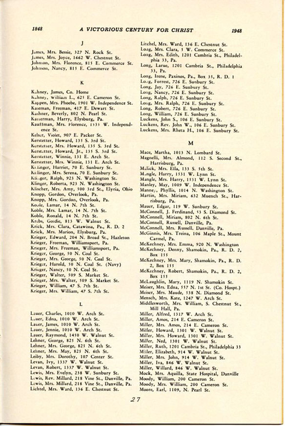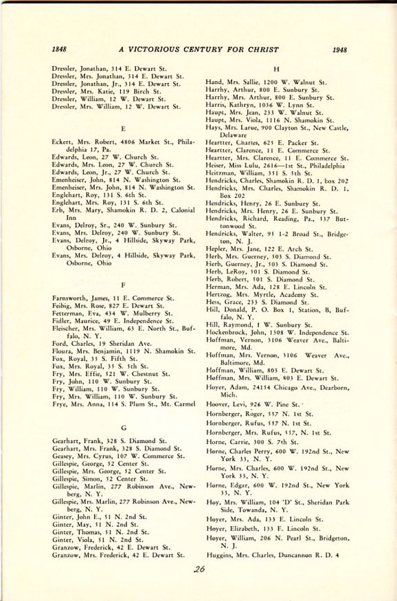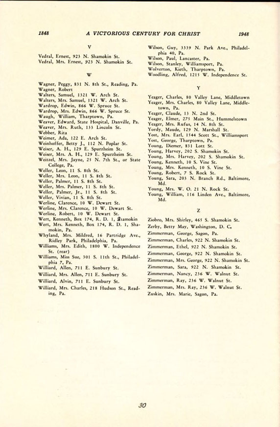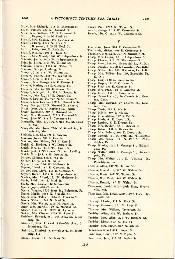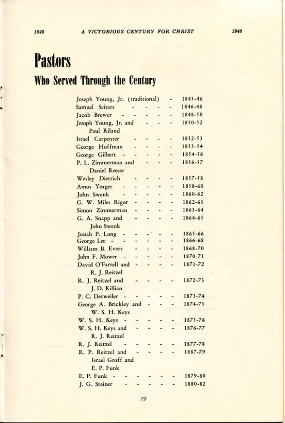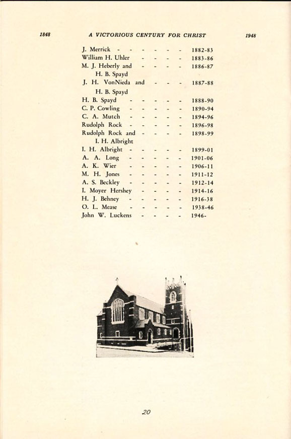 Pamphlet from the 100th Anniversary of the First Evangelical United Brethren Church, Shamokin Pennsylvania in 1948. -