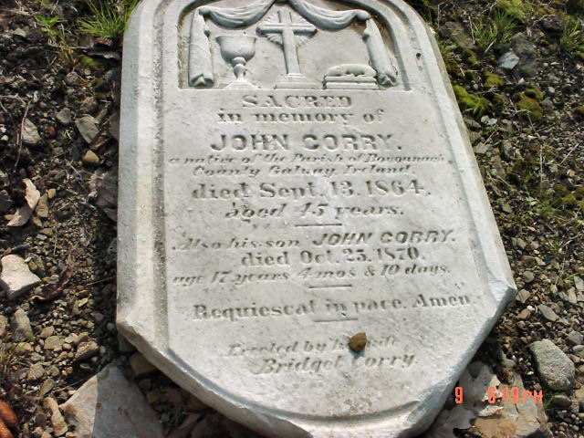 Also his son John Corry died Oct 25,1870 aged 17 years 4 mos 10 days