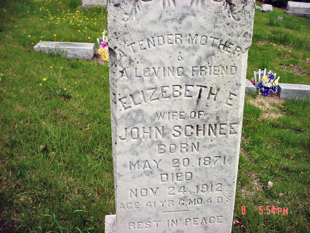 Wife of John Born May 20,1871, Died Nov 24,1914 Age 41 Yr 6 Mo 4DS |