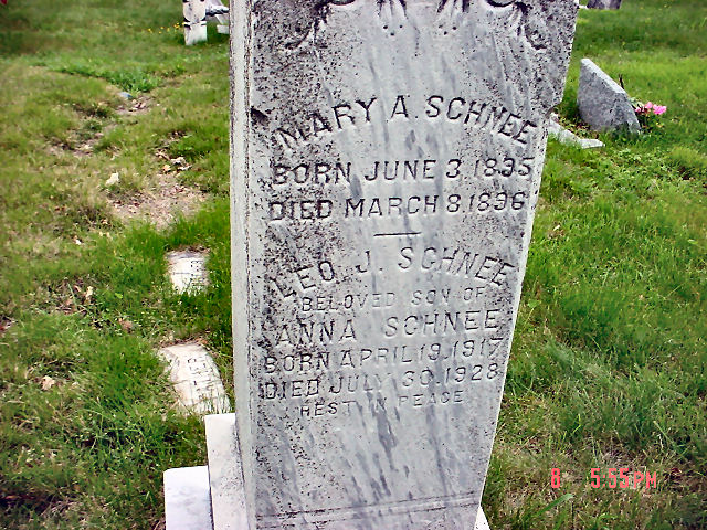 Beloved Son of Anna Schnee Born April 19,1917 Died July 30,1928 June 3,1835-March 8,1896 |