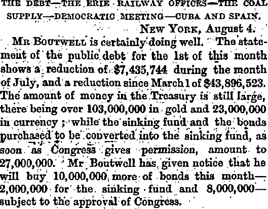 New York, August 4. -- Mr. BOUTWELL is certainly doing well. The