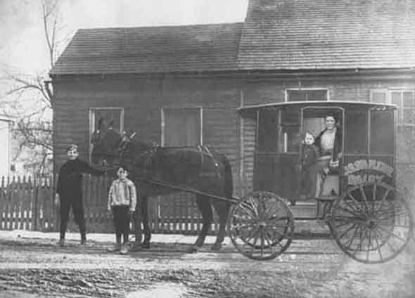 | Charles Langenheim | Peter Bowman, born about 1844; parents Thomas & Ellen Bowman | John and Mary Stapleton with 3 eldest children ca. 1889 | Mary Stapleton on Milk wagon with 3 of her sons ca 1909 |