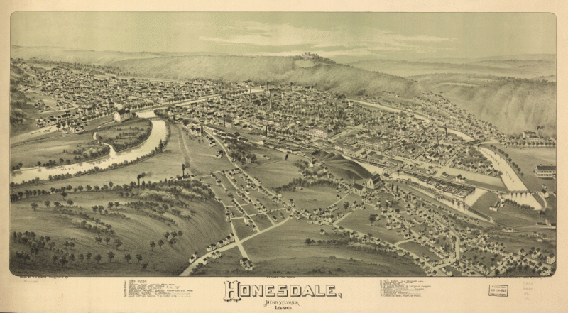 Indexed for points of interest. SUBJECTS Honesdale (Pa.)--Aerial
