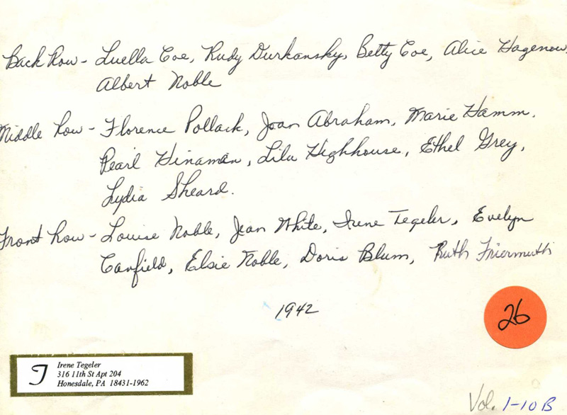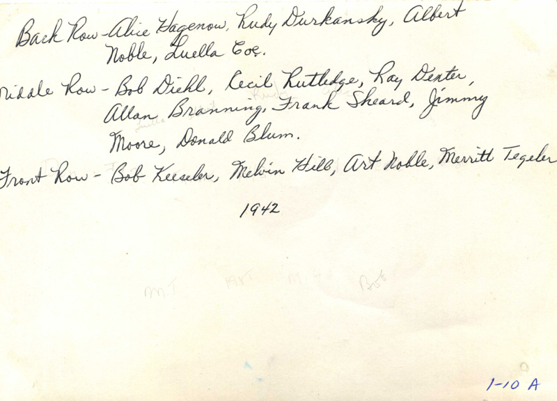 L. Tegeler, 3rd from right. Standing in 2nd Row is